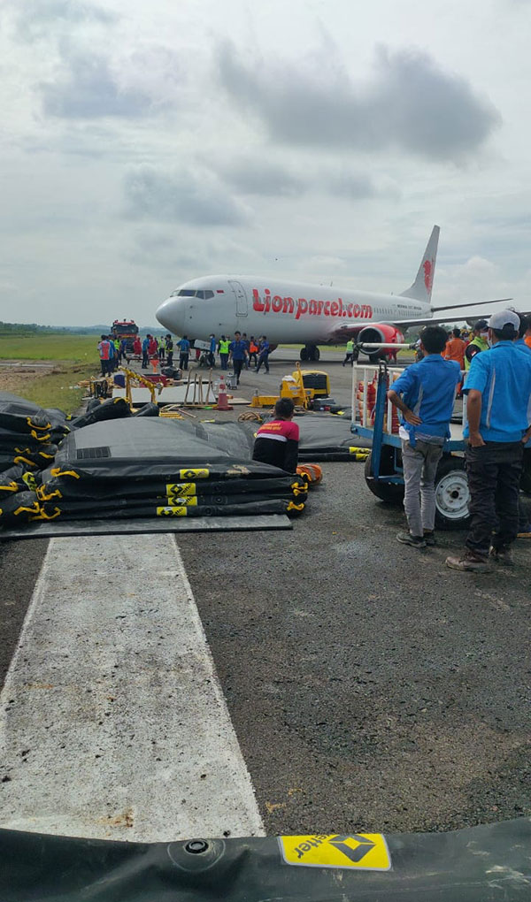 ECONOMIC ZONE - Pesawat Lion Air dengan nomor penerbangan JT 173, tergelincir saat mendarat di Bandara Radin Inten II, Lampung Selatan, Lampung, Minggu (20/12/2020) pukul 14.45 WIB.