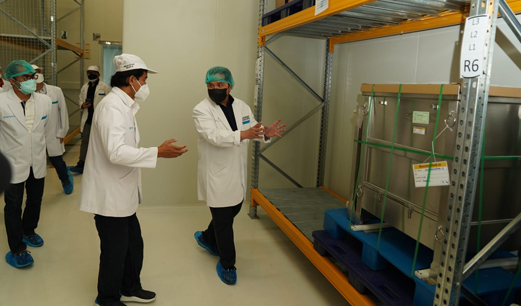 Hal tersebut diungkapkan Menteri Erick Thohir saat meninjau Biofarma di Bandung, Jawa Barat, Sabtu (10/7). Dalam kunjungan yang didampingi Dirut Biofarma, Honesti Basyir itu, Menteri BUMN ingin memastikan kelancaran proses akhir vaksin-vaksin COVID-19, baik berupa bahan baku (bulk) dan vaksin jadi, yang telah didatangkan dari sejumlah negara. Hingga 1 Juli lalu, Indonesia sudah 19 kali kedatangan vaksin, baik yang didatangkan langsung dari negara produsen atau melalui jalur multilateral COVAX Global Alliance for Vaccine and Immunization (GAVI).