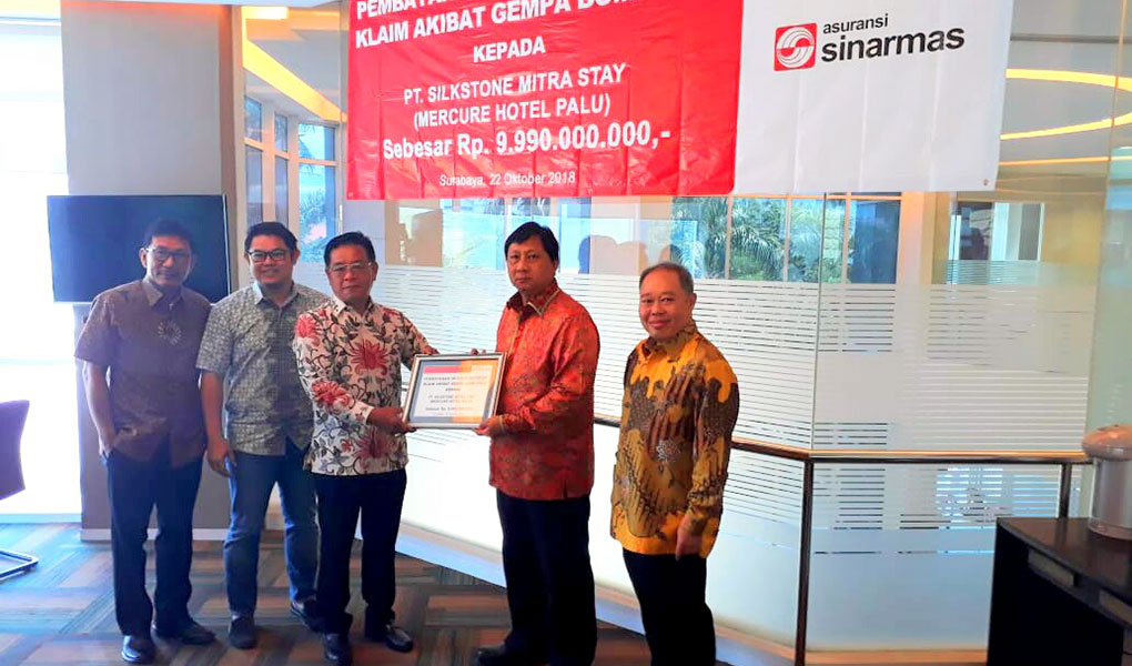 ECONOMIC ZONE - PT Asuransi Sinar Mas (ASM) kembali melakukan pembayaran interim payment claim kepada nasabah yang mengalami kerugian akibat Gempa Palu. Pembayaran klaim kali ini diserahkan kepada PT Silkstone Mitra Stay (Mercure Hotel Palu) dengan nilai interim payment sebesar Rp9,99 miliar. Direktur Asuransi Sinar Mas, Marten P Lalamentik, menyatakan bahwa pihaknya kembali membuktikan komitmennya ke nasabah dengan membayar interim payment kepada PT Silkstone Mitra Stay. “Minggu sebelumnya, Asuransi Sinar Mas juga telah membayar interim payment kepada nasabah kami, PT Palu Graha Sejahtera senilai Rp10,275 Miliar,” ujar Marten, dalam keterangan resminya, di Jakarta, Selasa (23/10).