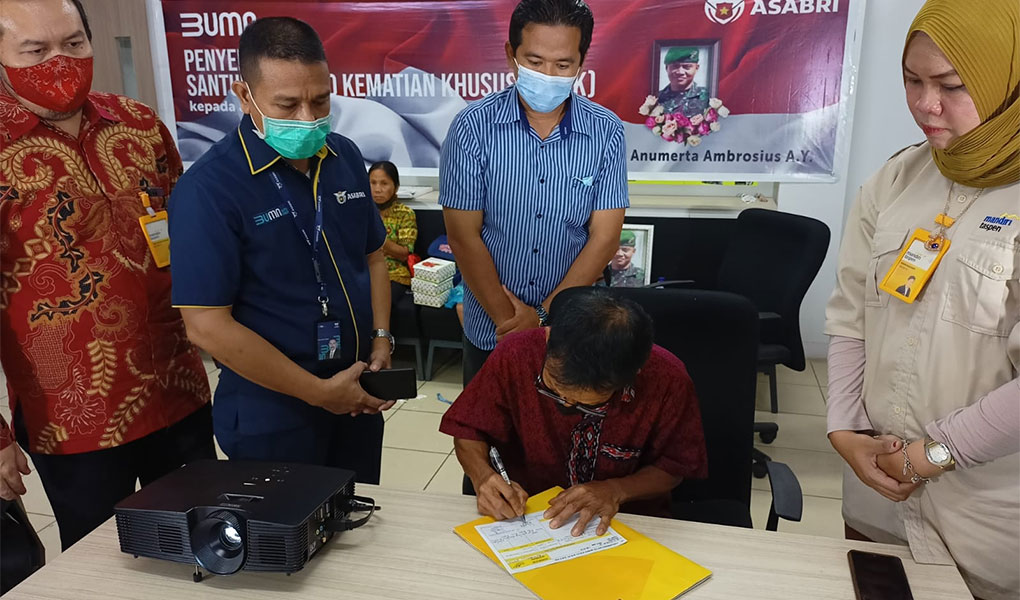 ECONOMIC ZONE - Kamis, 9 September 2021, PT ASABRI (Persero) menyerahkan Santunan Risiko Kematian Khusus (SRKK) kepada ahli waris 4 (empat) prajurit TNI yang gugur akibat serangan kelompok kriminal bersenjata di Papua Barat. Penyerahan ini dilakukan secara serentak di 3 (tiga) Kota yaitu Pontianak, Makassar dan Manado. Santunan diberikan langsung kepada ahli waris oleh Kepala Kantor Cabang PT ASABRI (Persero) di 3 kota tersebut. Kegiatan ini disaksikan secara daring oleh Panglima Kodam XIII/Merdeka, Para Komandan satuan di Kodam XII/Tanjung Pura dan Kodam XIV Hasanuddin, serta Dewan Komisaris dan Direksi PT ASABRI (Persero) melalui zoom meeting.