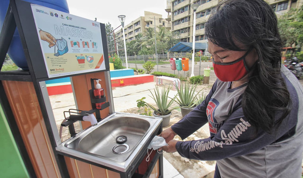 BNI juga menyerahkan tempat sampah khusus masker yang menjadi satu dengan wastafel portable dan media edukasi limbah masker di kawasan rusun Marunda, Jakarta. Acara ini dilaksanakan sebagai peringatan hari Sampah pada Minggu, 21 Februari 2021.