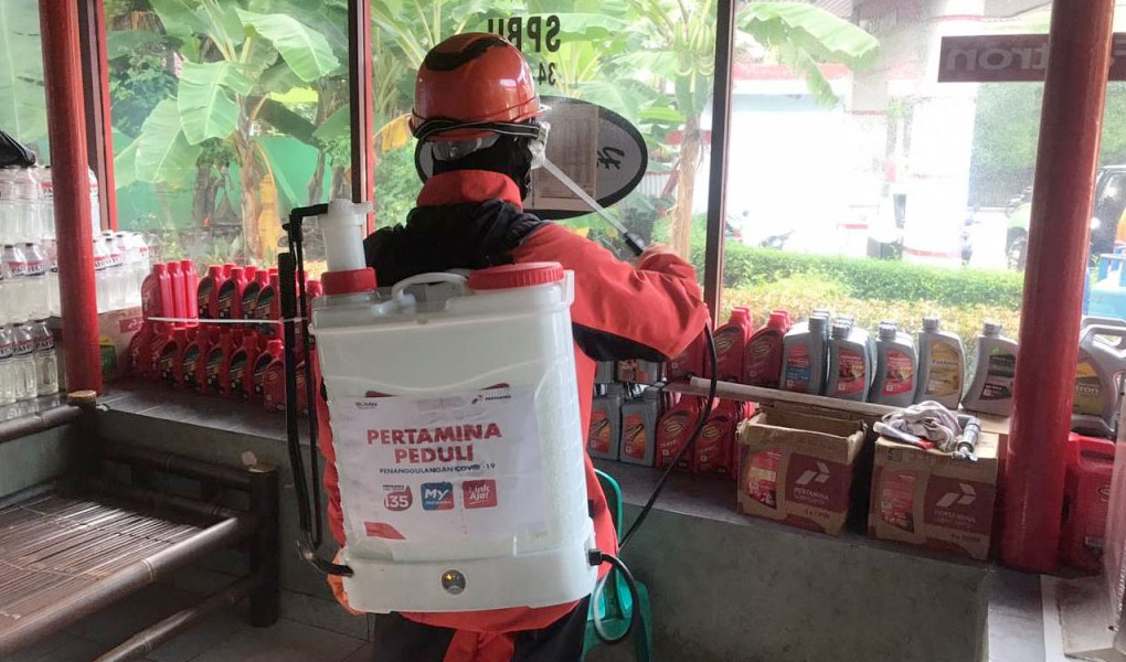 PT Pertamina (Persero) melakukan penyemprotan desinfektan mulai Rabu (25/3) bekerjasama dengan organisasi Aksi Cepat Tanggap (ACT). Program ini masuk dalam kegiatan tanggung jawab sosial (CSR) perseroan, sebagai upaya membantu kenyamanan masyarakat yang akan mengisi BBM sekaligus memanfaatkan fasilitas yang ada. Upaya sterilisasi SPBU telah dilakukan secara bertahap ke SPBU lainnya. Langkah tersebut dilakukan untuk memastikan bahwa area operasi Pertamina higienis dan telah steril dari bakteri, kuman dan virus.